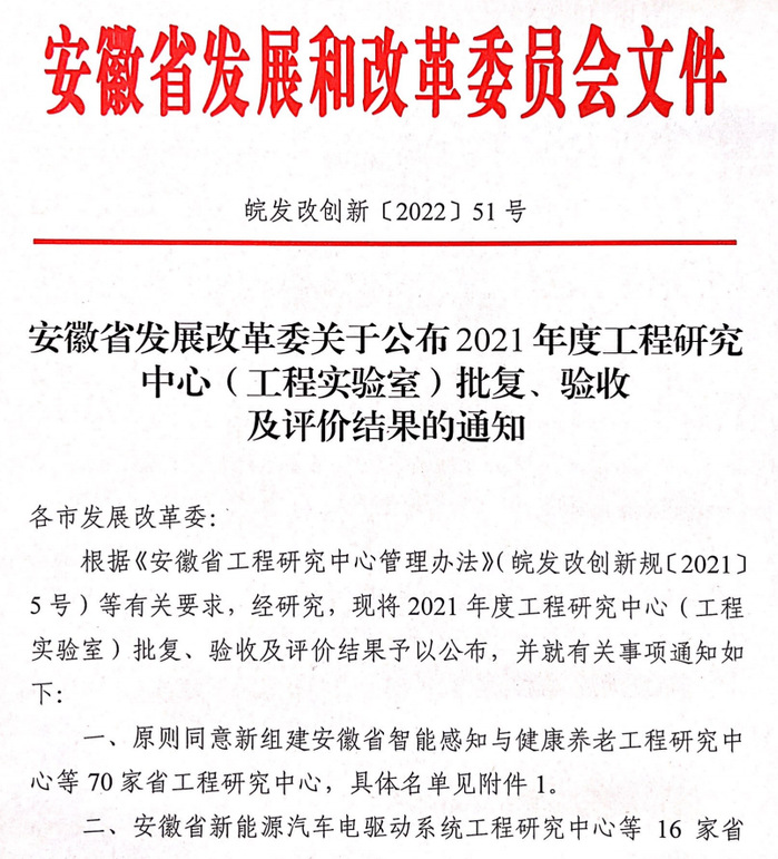 附:《2021年度安徽省工程研究中心评审结果公示》链接:http://fzggw.ah.gov.cn/ywdt/tzgg/146407681.html
