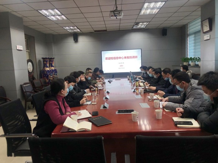 2022年3月24日,校信息化建设与发展中心胡东辉主任等一行来新葡官网调研信息化建设,并与学院进行了交流。3003新葡平台登录入口院长王静峰、副院长张振华和王昌建、副书记魏婷,党政办、教学办、学工办等相关部门人员参加了本次会议。