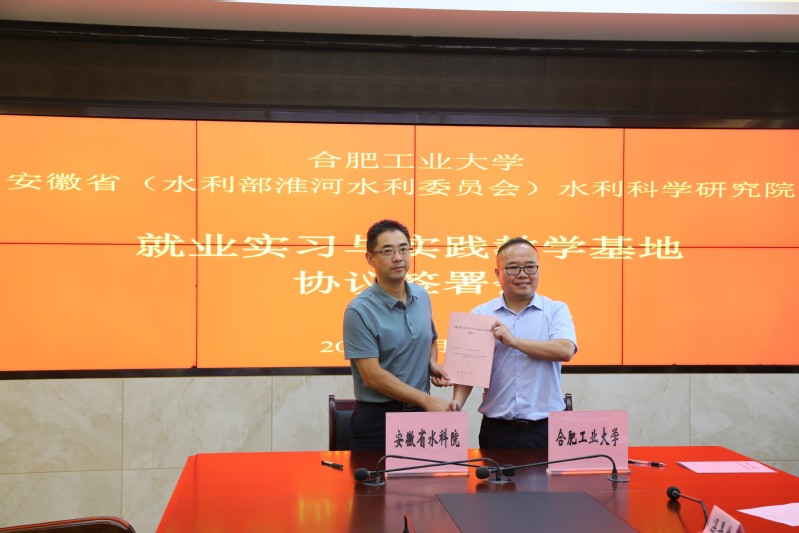 2022年9月13日下午,3003新葡平台登录入口院长王静峰一行赴安徽省(水利部淮河水利委员会)水利科学研究院(简称“安徽省水科院”)调研,并参加实践教学基地、就业基地签约及授牌仪式。安徽省水科院党委副书记、副院长袁先江、院党委委员、副院长彭建和等,3003新葡平台登录入口副院长张振华、副院长王昌建等出席了签约授牌仪式。