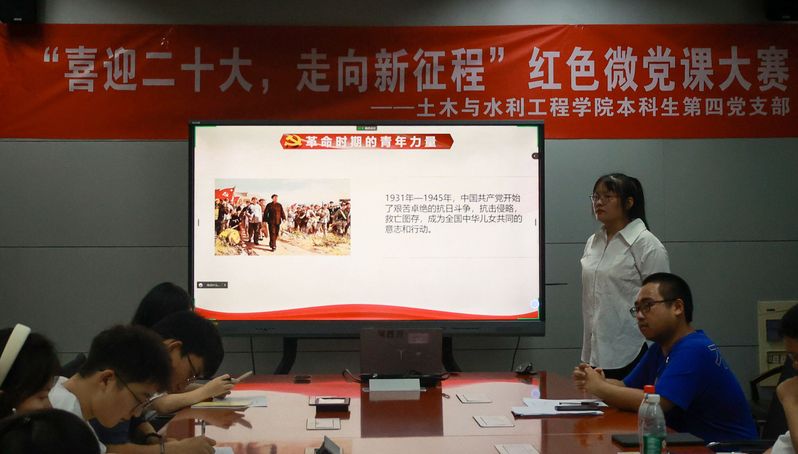 “砼”讲青春,奋进征程101日,学院本科生第四党支部展开了以喜迎二十大,走向新征程为主题的红色微党课主题讲解比赛。参加本次比赛的同学通过讲、评、选三个环节生动形象的再现了党的光辉历程。