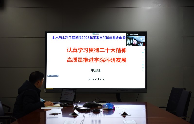 王昌建作了题为“认真学习贯彻二十大精神,高质量推进学院科研发展”的报告。总结和分析了近几年新葡官网基金申报和获批情况,并就2023年度国家基金申报工作提出了建议:深刻认识土木领域交叉学科的发展新战略、新方向,强化重点、人才申报战略,确保基金申报数量,重抓基金申报质量,强化组织和宣传等。