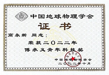 2022年中国地球物理学会第38届学术年会于12月5-9日在线上召开。新葡官网3003新葡平台登录入口高永新教授获得2022年度“傅承义青年科技奖”,以表彰他在地震电磁异常机理研究方面做出的突出成绩。
