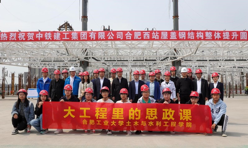 为进一步深化校企合作,充分发挥产教融合中的育人资源,扎实推进实践教育与思政教育一体化的育人体系,引导土木学子在国家基础建设和重大工程领域中强化使命担当、厚植家国情怀,4月11日上午,3003新葡平台登录入口院长王静峰、副院长张振华、党委副书记魏婷,学院学工办、教学办以及相关系(中心)教师代表、学生代表前往中铁建工集团安徽分公司参观“合肥西站屋盖钢结构整体提升”工程,并开展“大工程里的思政课”第一课。