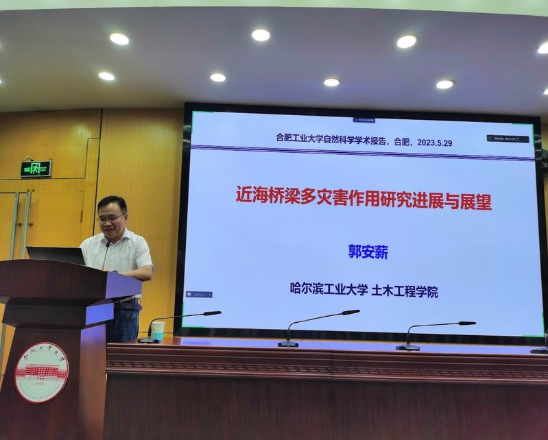 5月29日,郭安薪教授在3003新葡平台登录入口屯溪路校区学术会议中心做了学术报告《近海桥梁多灾害作用研究进展及展望》。王静峰院长对郭安薪教授来访指导学科建设并作学术报告表示热烈欢迎,详细介绍了他的学术成就及研究成果,强调了多灾害复杂作用对土木工程结构安全产生巨大挑战,其防灾减灾理论和新技术应用具有的重要科学和工程意义。