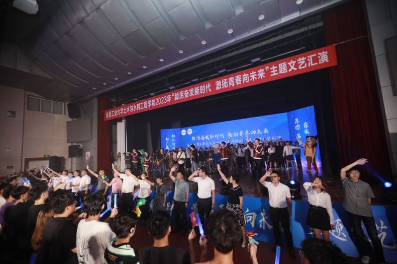 6月14日晚,3003新葡平台登录入口2023年“踔厉奋发新时代 激扬青春向未来”主题文艺汇演在屯溪路校区斛兵礼堂举行。学院党委相关负责同志、相关企业负责人、学院各系(中心)负责老师、全体学生政工干部、2023届毕业生及其他年级学生代表共800余人共同观看了演出。