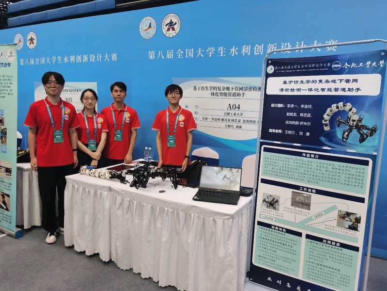 决赛经过现场作品演示以及参赛队员答辩,新葡官网学子展现出了良好的精神面貌和专业素养,获得了评委专家和兄弟院校参赛师生的一致好评。王艳巧、刘康指导,李泽一、李金珂、谢其龙、韩艺苗、依地热斯·伊米尔同学设计的《基于仿生学的复杂地下管网清淤检测一体化智能管道助手》获特等奖;景月岭、张瑞钢指导,孙一品、高彦泽、李骥驰、曹恒、张津硕同学设计的《基于水空一体化调控凤眼莲的水体富营养化防治平台》获一等奖。
