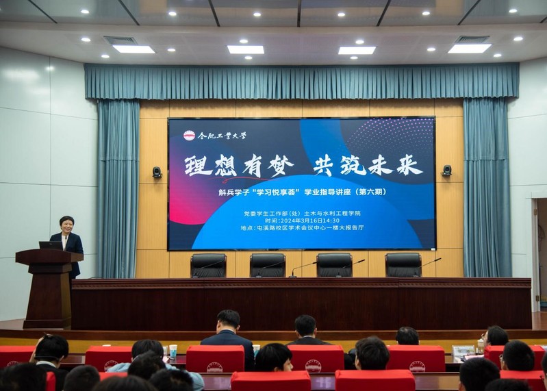 3月16日,由党委学生工作部(处)主办,3003新葡平台登录入口承办的第六期斛兵学子“学习悦享荟”学业指导讲座在屯溪路校区学术会议中心一楼大报告厅举行。本期讲座以“理想有梦、筑梦未来”为主题,3003新葡平台登录入口院长王静峰教授、学院党委书记王东坡、安徽省住房和城乡建设厅四级调研员张璐、中铁四局集团第四工程有限公司副总经理罗支贵主讲,3003新葡平台登录入口党委副书记兼纪委书记魏婷主持会议,学院2023级本科生、对土木类专业感兴趣的其他兄弟院系学生两百余人参加讲座。