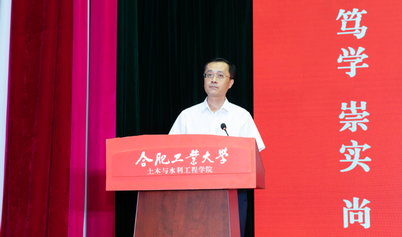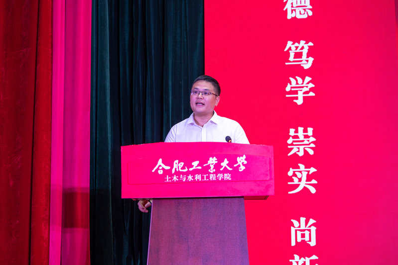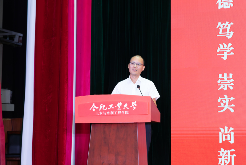 学院党委书记王东坡宣读《3003新葡平台登录入口2024级本科生班主任聘任决定(合肥校区)》,副院长王昌建、高鹏为本科生班主任代表颁发了聘书。会上,学院本科生行业导师代表、优秀校友代表,中铁四局钢结构建筑公司总工程师曹晗发表讲话。他以幽默风趣的话语回顾了自己在工大的学习生活经历,向新生们分享了行业发展的前沿动态,并给出职业规划的宝贵建议,鼓励大家志存高远,脚踏实地,热爱祖国、热爱老师、热爱同学,为成为一名优秀的新时代土木人不懈努力。